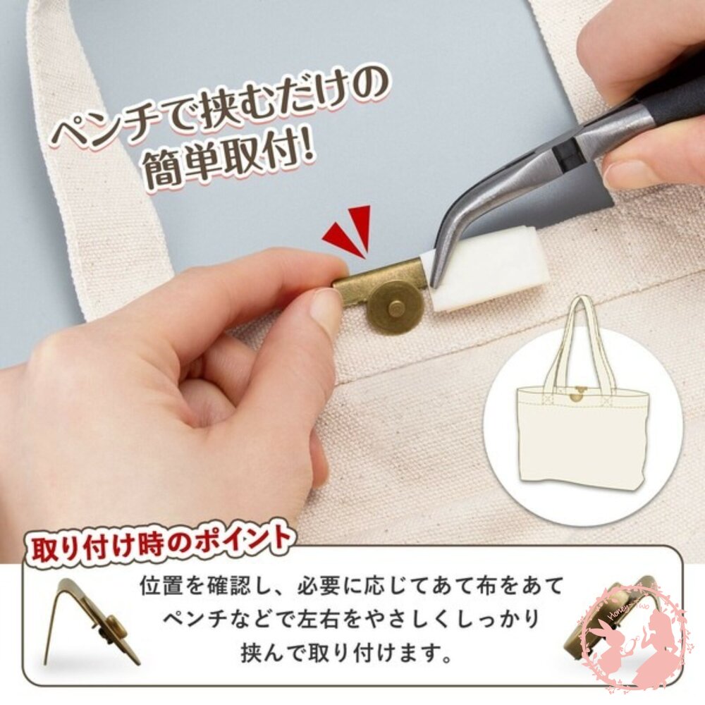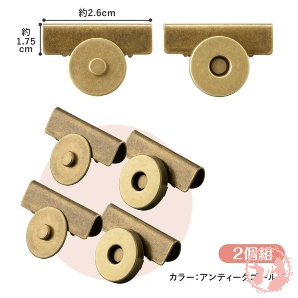 包包防盜磁性開關來囉✨ 只需用鉗子夾住即可 就能將磁性按鈕固定在包的邊緣😊 👀不需要針線 👀笨手笨腳的人也能輕鬆完成 👀防止您的行李掉落 👀並且很難看到包的內部 👀簡單的設計適合各種包 內容物:2組入 尺寸:單個約1.75×2.6×厚2.5cm 材質:鐵、磁鐵 產地:中國製/日監制