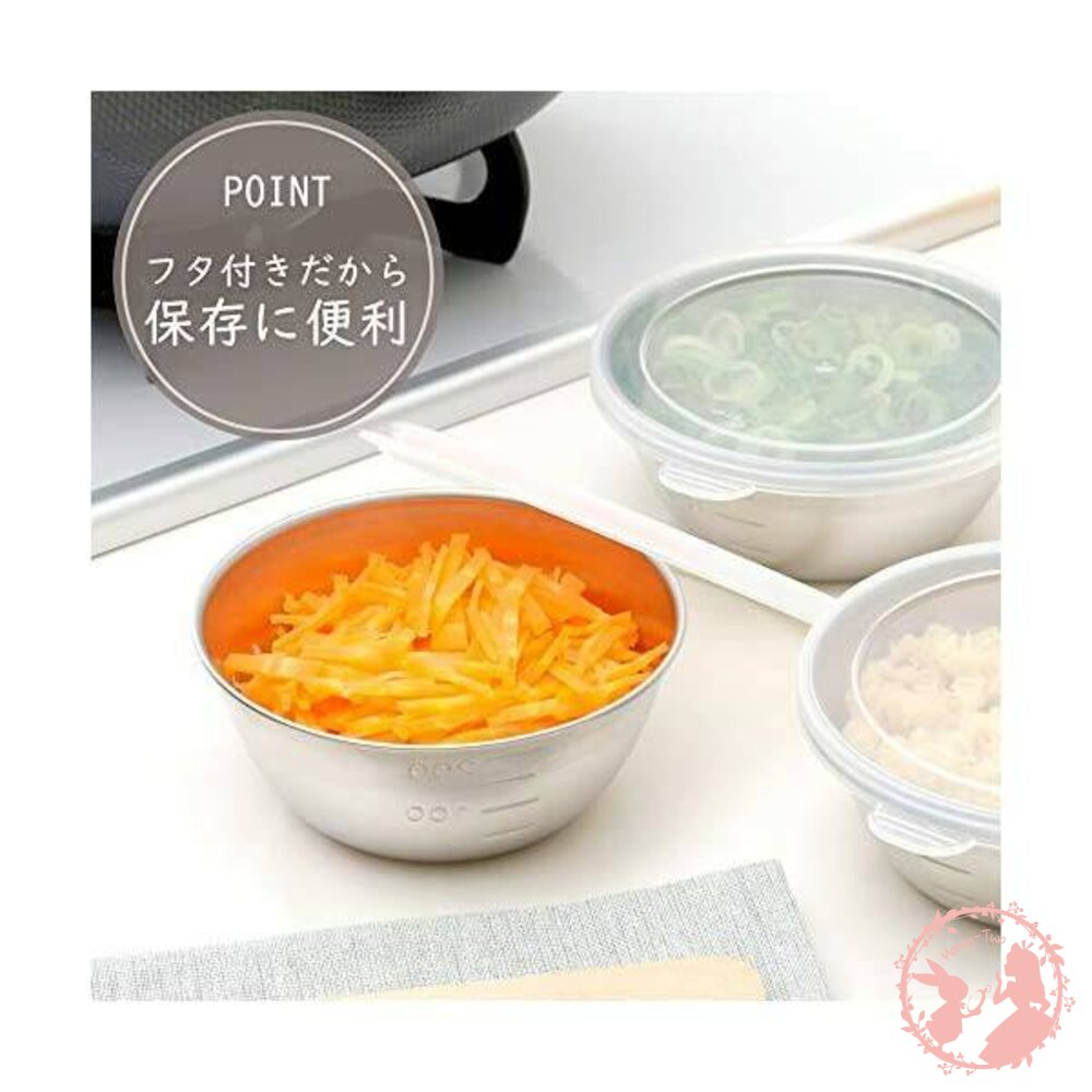 下村企販 18-8 不銹鋼附蓋3入缽組(有刻度)/ 備料 /計量碗 /刻度 料理碗 三入