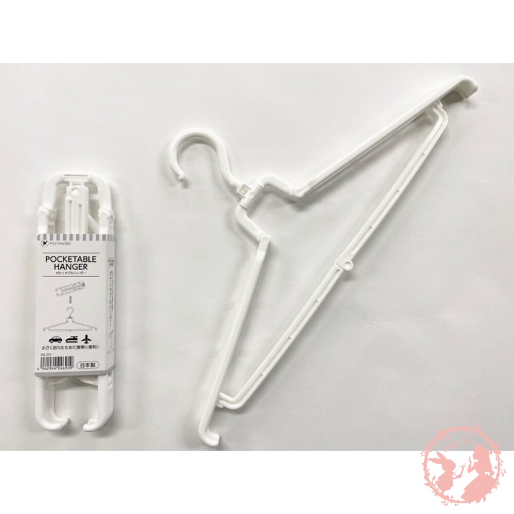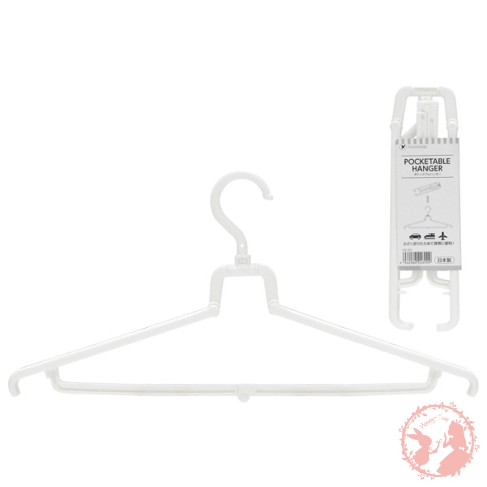 攜帶式可折疊衣架 外出旅行、露營總會有毛巾、小孩衣服要晾 帶一堆衣架又顯的麻煩 攜帶式可折疊衣架用完收納起來 不佔空間,非常方便 不論放在行李箱、車上都不佔空間 鉤子可以360°旋轉 它也可以用作衣架支架。 防止衣架側移,保持衣物盡快曬乾 包裝:塑料袋裝 材質:聚丙烯 尺寸:約 45.0 x 10.5 x 1.8 cm . 耐重: 約5 kg(使用兩側掛鉤時) 產地:日本