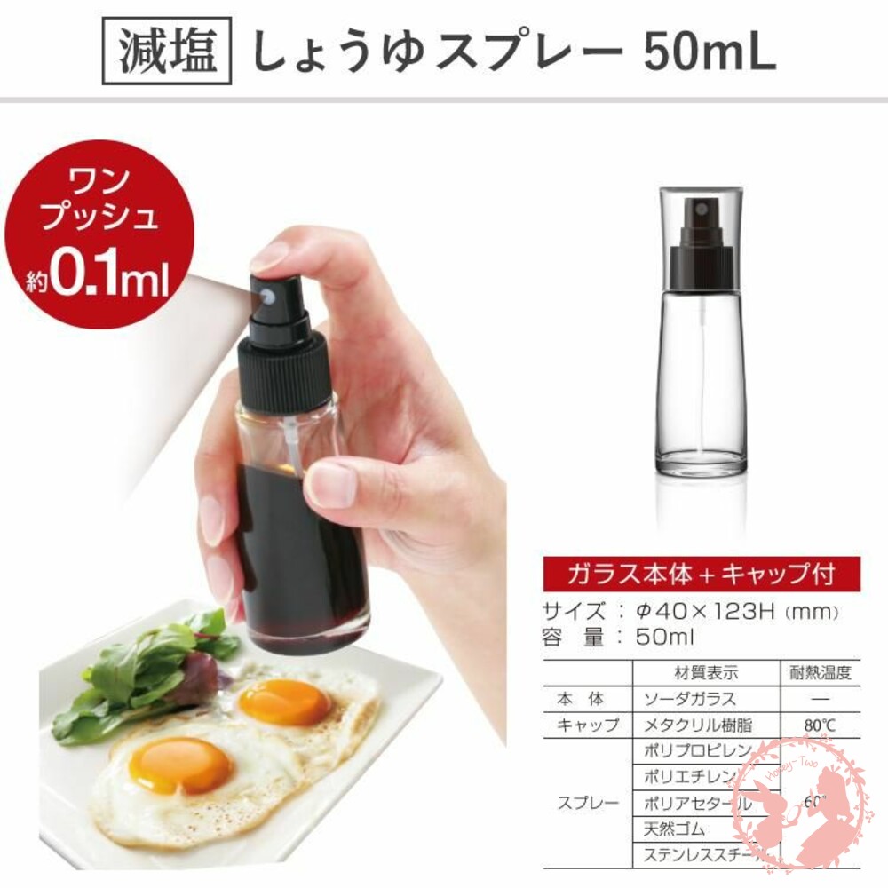 ★★產品介紹.特色★★ 採用玻璃瓶身製成,搭配按壓式噴頭設計 避免一次倒出太多醬油而太鹹,採用噴霧式設計 裝滿約50ml ,可讓食材既有鹹味又不過鹹 ■尺寸:約 4 × 12.3 cm 50ml ■材質:本體 / 蘇打玻璃、蓋子 / 甲基丙烯酸樹脂、噴霧 / 聚丙烯、聚乙烯、 Pom 、天然橡膠、不銹鋼 ■產地:日本商品中國製