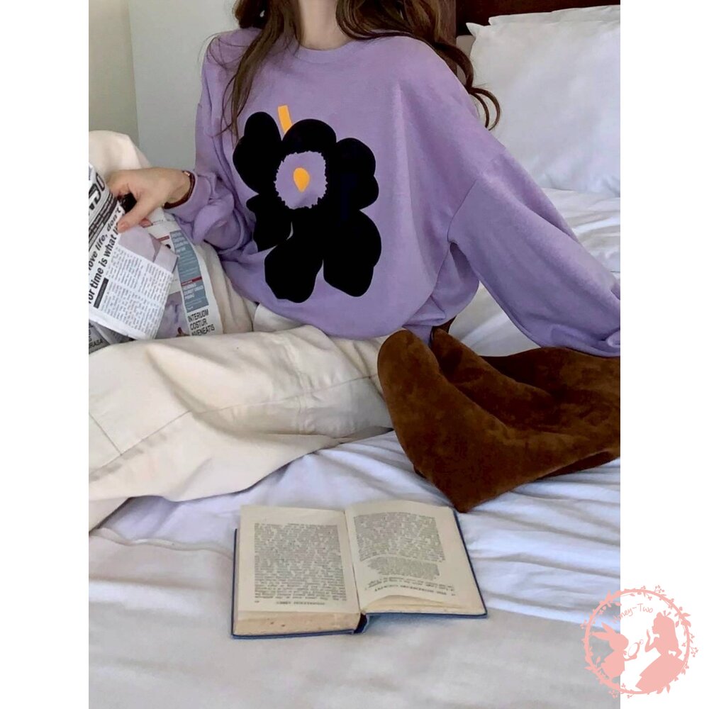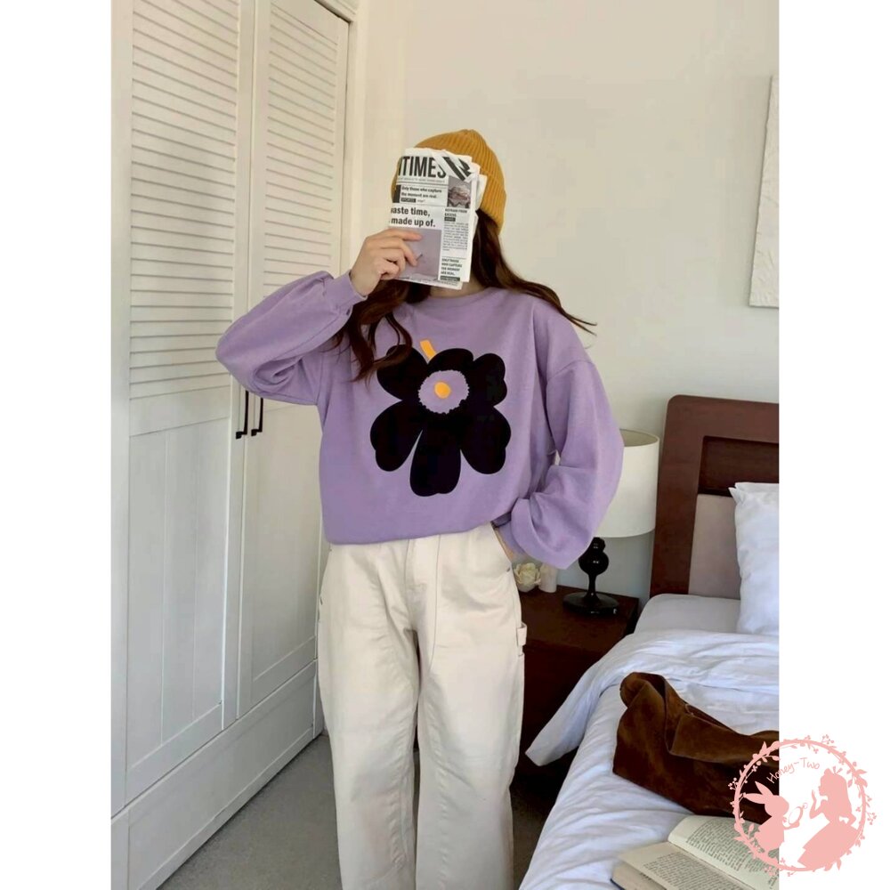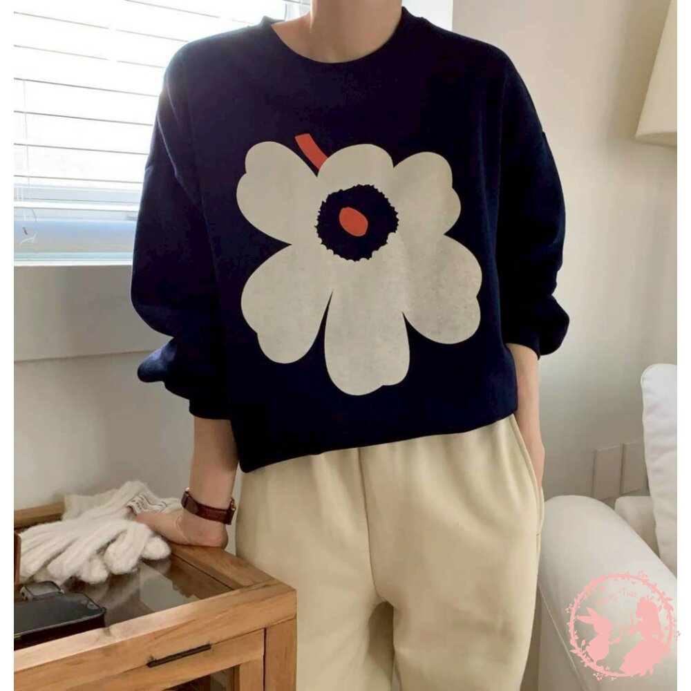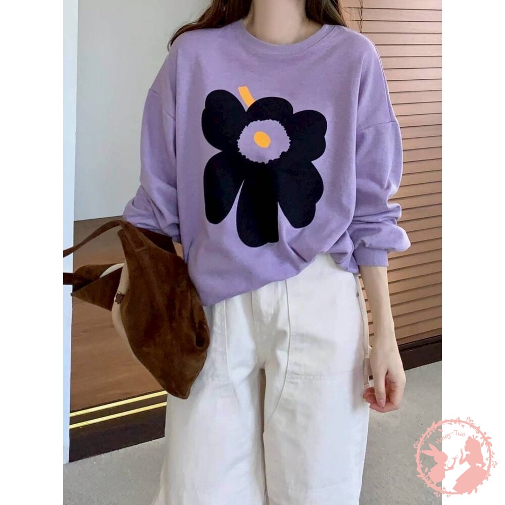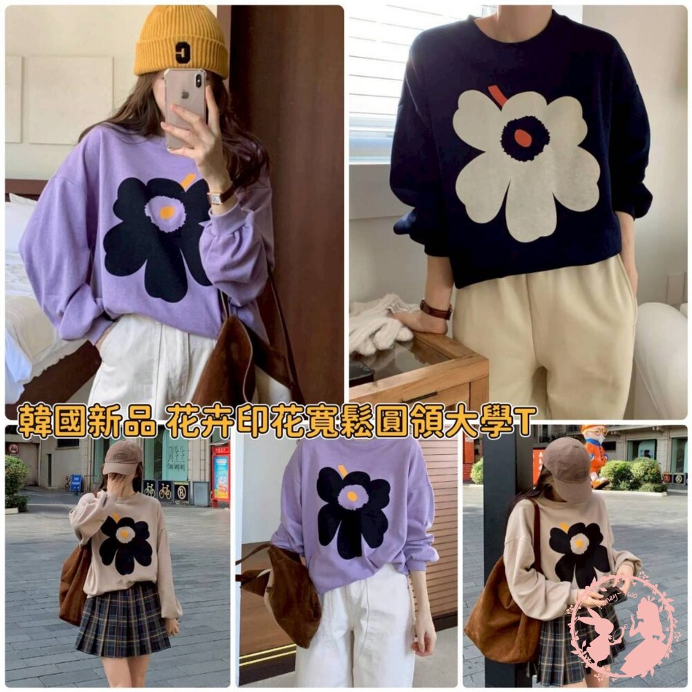 韓國新品 花卉印花寬鬆圓領大學
