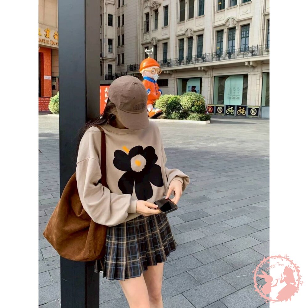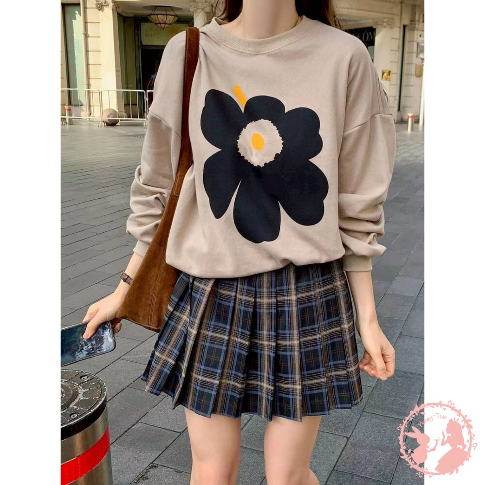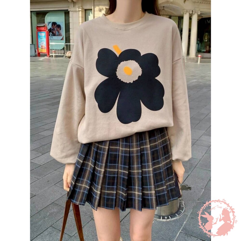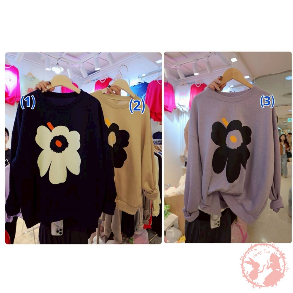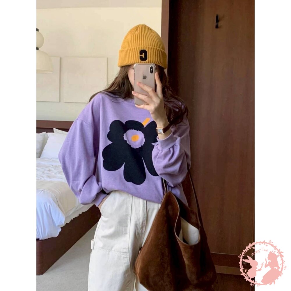 韓國新品 花卉印花寬鬆圓領大學