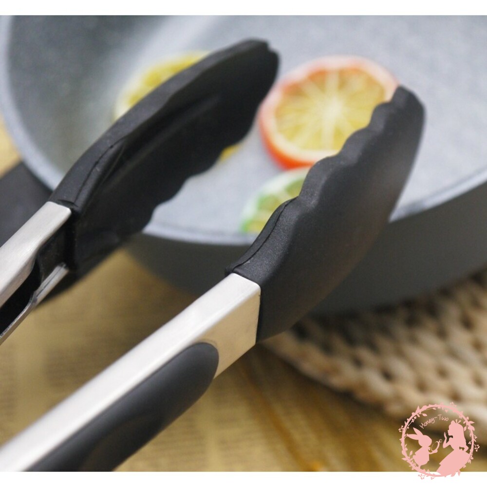 不鏽鋼製握柄堅固耐用,搭配食用級矽膠材質所包覆的夾爪,