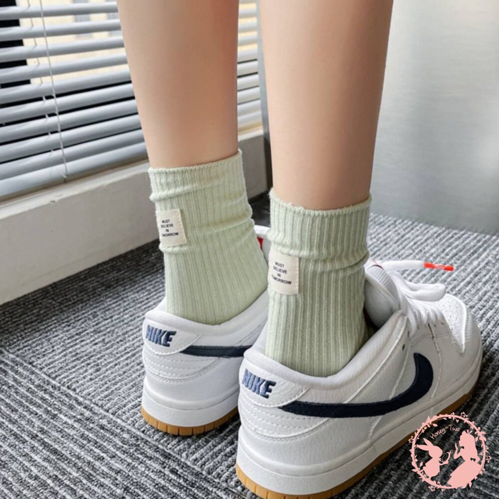 🏷️ 日系坑條後跟布標中筒襪2入組 減齡穿搭 ~ 時髦小心機 # 後腳跟布標 奶油堆堆襪 # 溫柔親膚精梳棉面料 雙針工藝 全棉料 吸濕排汗 非常舒適 讓腳丫子享受雲朵般呵護 甜酷少女style 像是夏日的水果冰淇淋🍧 加寬加高襪口 不下滑不勒腳 豎坑條紋理設計 顯腿瘦的小秘密 縫紉編織布標 個性有型 搭配球鞋、老爹鞋、洞洞鞋、勃肯鞋 都好好看! ▪️尺寸:成人女襪35-40碼均可